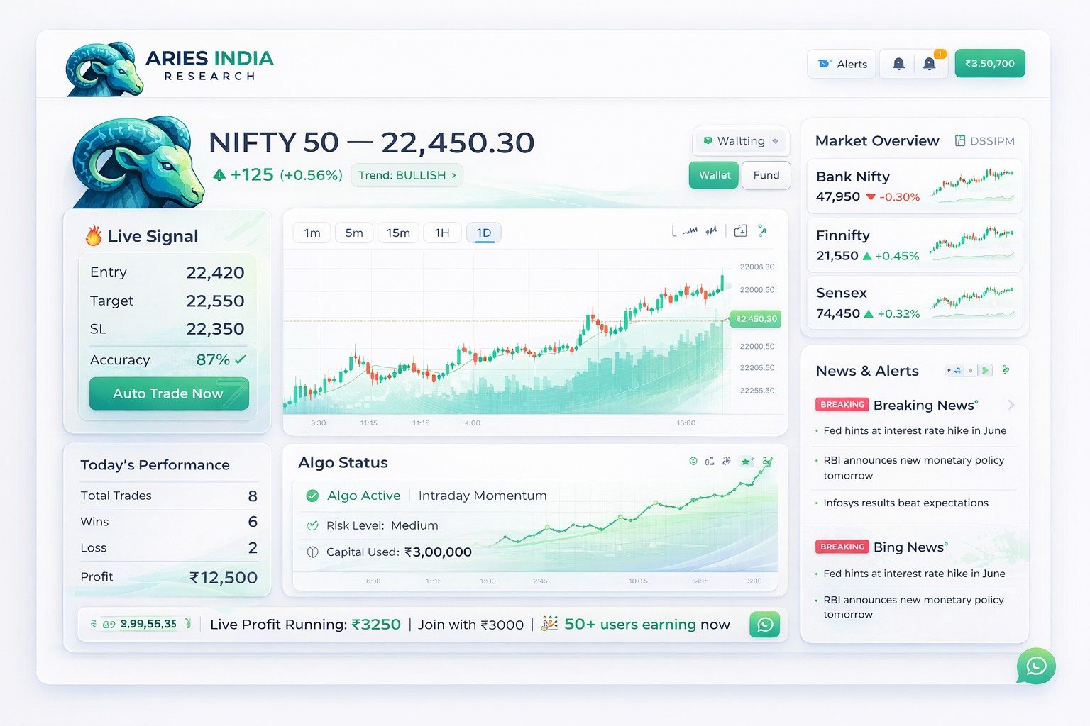 At Aries India Research, we focus on delivering clear, actionable trading recommendations backed by in-depth market research. Every recommendation is designed with predefined entry, exit, and risk parameters, helping clients trade with clarity and confidence.